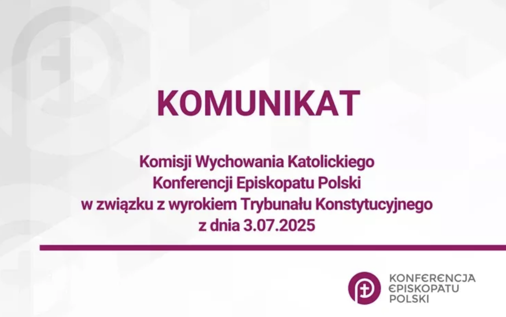 Komunikat Komisji Wychowania Katolickiego Konferencji Episkopatu Polski w związku z wyrokiem Trybunału Konstytucyjnego z dnia 3.07.2025