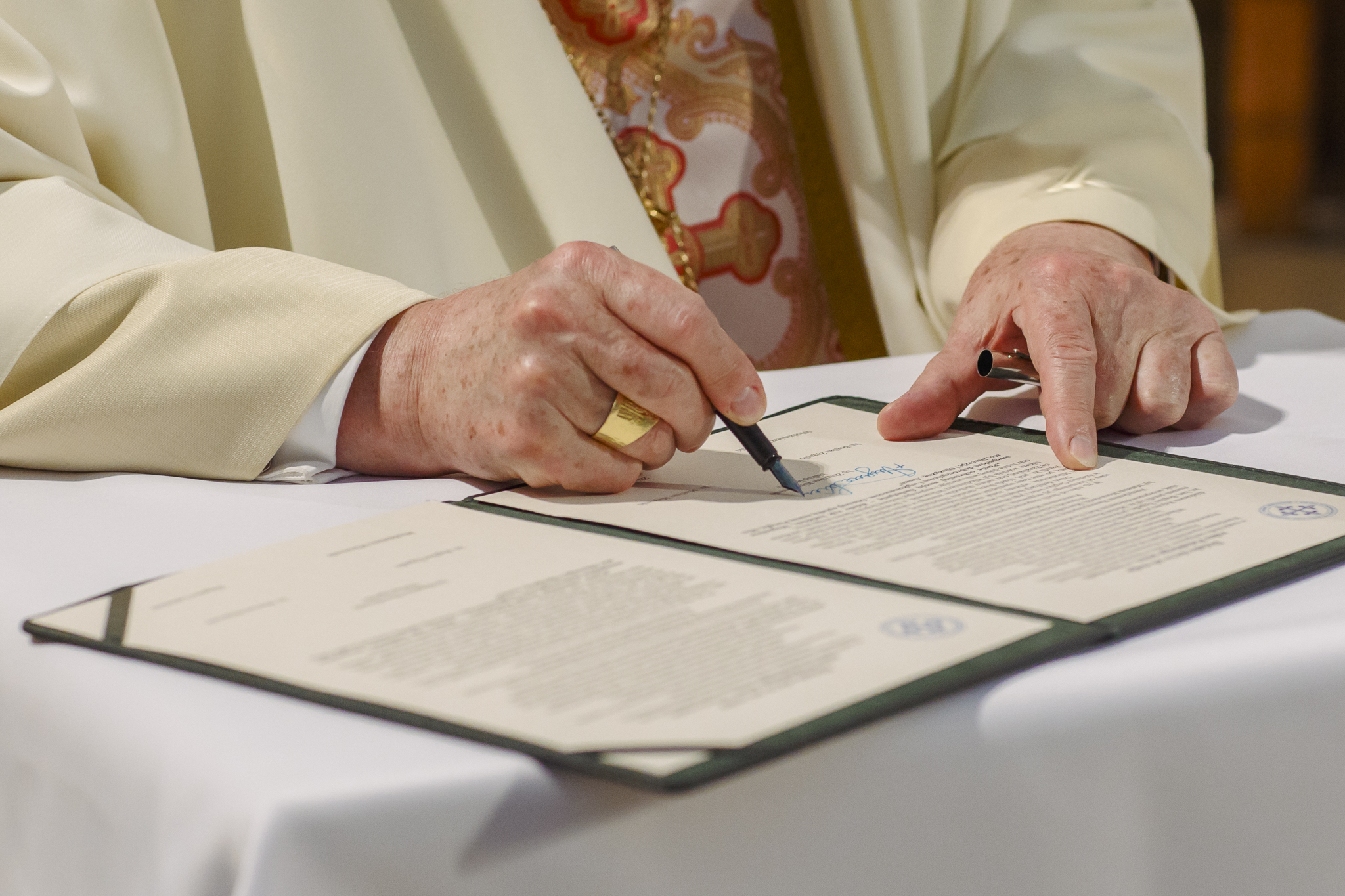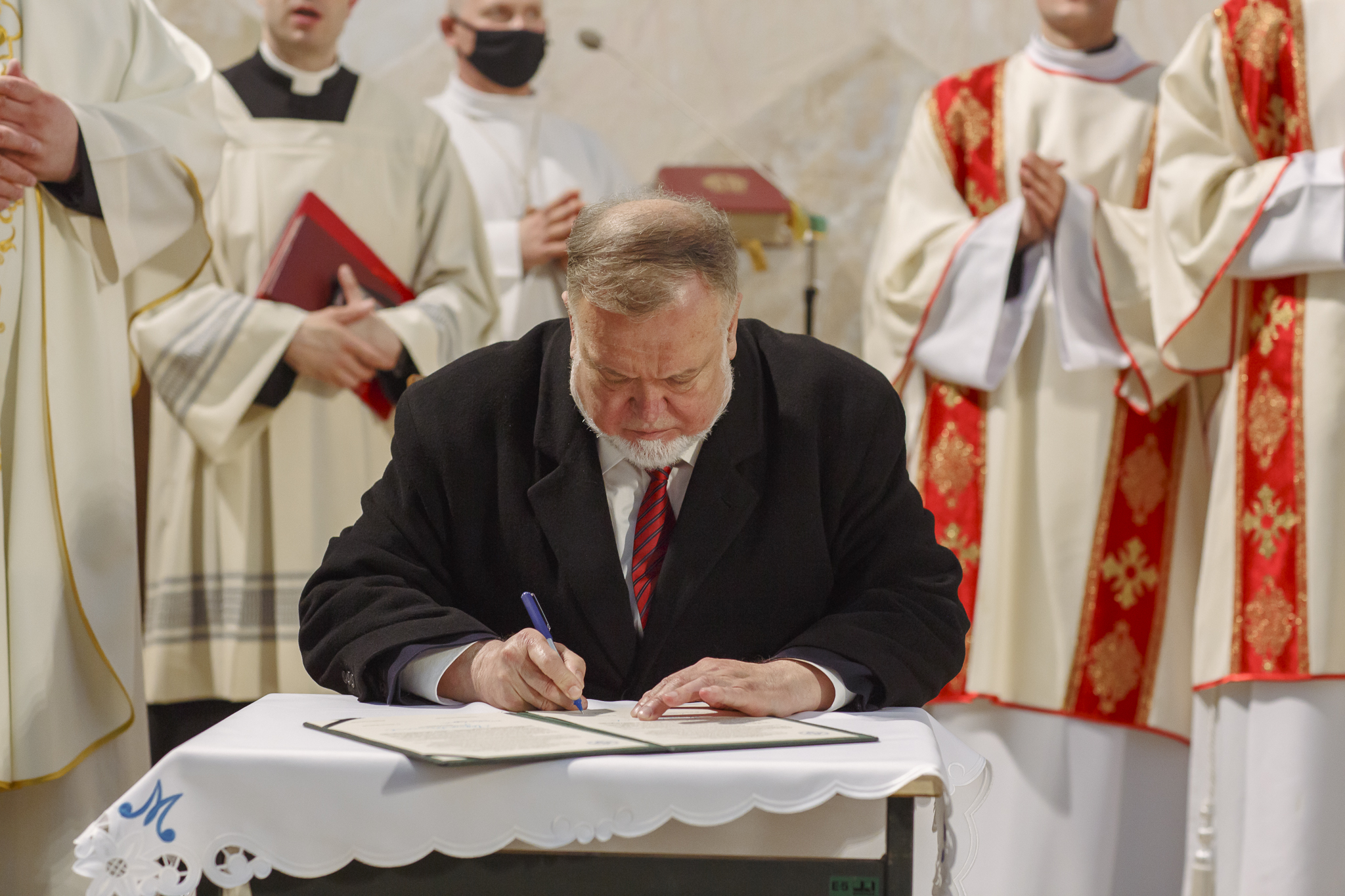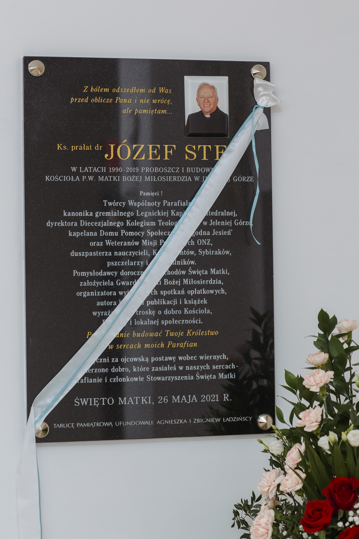 Na zakończenie liturgii podpisane zostało Testimonium - historyczne świadectwo, tego co dokonało się w Dniu Matki roku Pańskiego 2021 w naszej Parafii. Po liturgii Biskup Legnicki w asyście ks. Bogdana Żygadły - dziekana Dekanatu Jelenia Góra Zachód, odsłonili tablicę upamiętniająca osobę śp. ks. prałata dra Józefa Steca - pierwszego proboszcza, budowniczego kościoła.