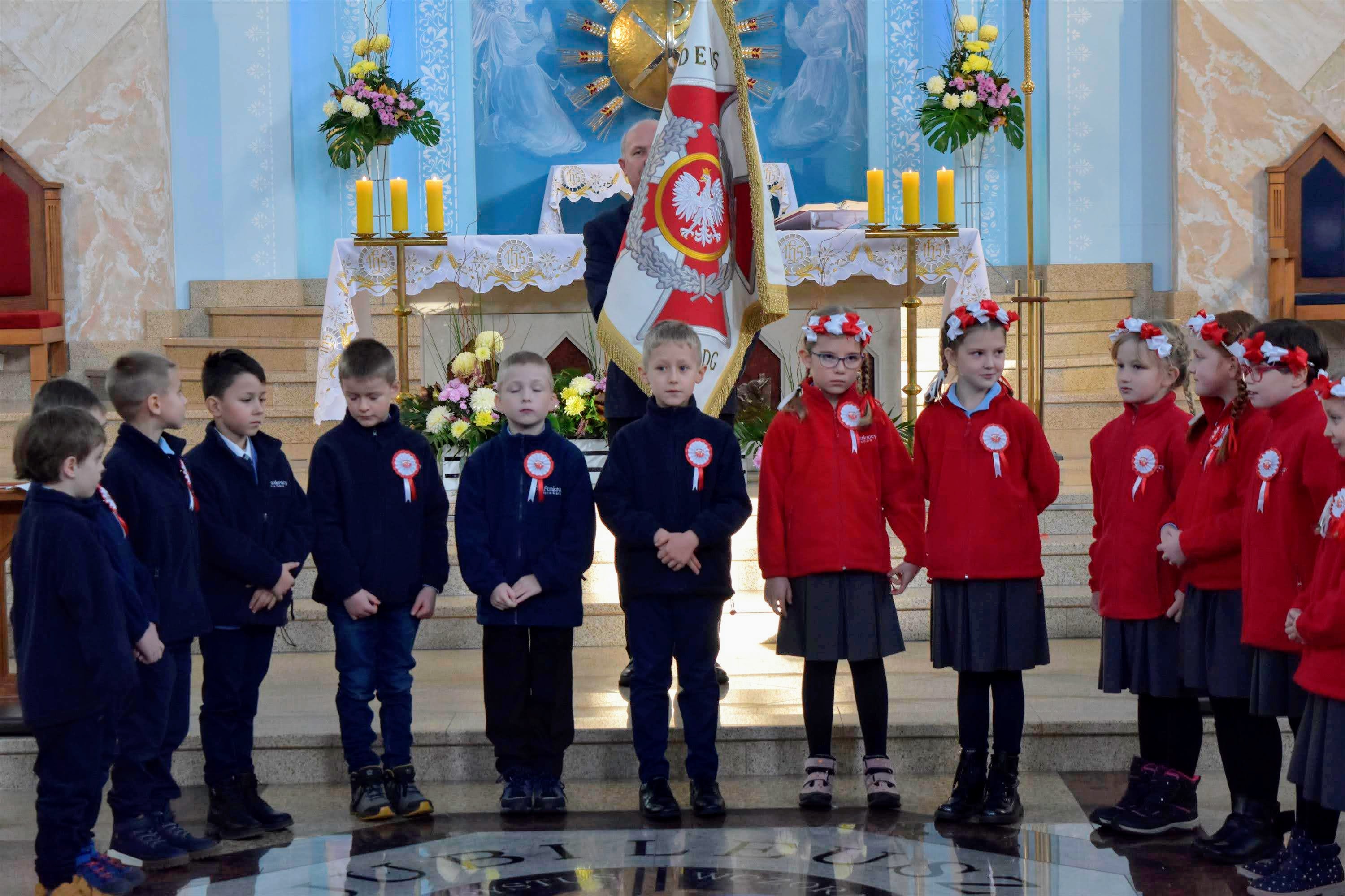 W Narodowe Święto Niepodległości, w Jeleniej Górze miało miejsce też inne ważne wydarzenie. Po uroczystej Mszy św. w intencji Ojczyzny, celebrowanej w kościele Matki Bożej Miłosierdzia w Cieplicach, i po odśpiewaniu w południe przez wszystkich zebranych hymnu państwowego, dzieci z kl. I szkoły podstawowej Zespołu Szkół Katolickich u św. Pankracego, zaprezentowały przedstawienie mówiące o historii Polski, o tym co działo się ponad 100 lat temu. Na zakończenie prezentacji uczniowie złożyli uroczyste ślubowanie i zostali pasowani na uczniów Szkoły u św. Pankracego. Kolejną częścią obchodów święta było wspólne śpiewanie pieśni patriotycznych, co zakończyło radosne i podniosłe spotkanie.