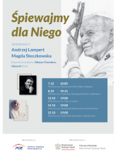 W ramach obchodów XXIII Dnia Papieskiego w niedzielę 15 X, w naszym kościele o godz. 19:00, odbędzie się koncert pt. „Śpiewajmy dla Niego” w wykonaniu Andrzeja Lamperta i Magdy Steczkowskiej. Patronat honorowy nad koncertem objęła pani Marzena Machałek - wiceminister Edukacji i Nauki.