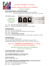 => Msza Wieczerzy Pańskiej w czwartek o godz. 19:00; następnie adoracja Najświętszego Sakramentu do godz. 24:00;