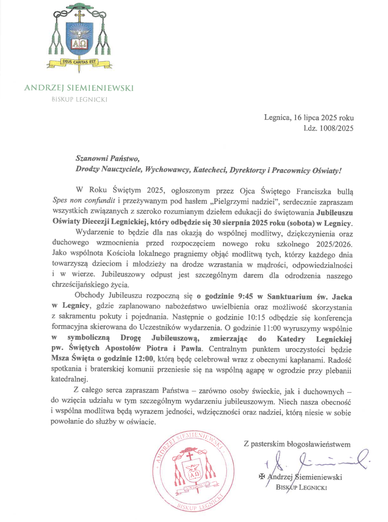 W załącznikach przekazujemy skan Zaproszenia Biskupa Legnickiego.