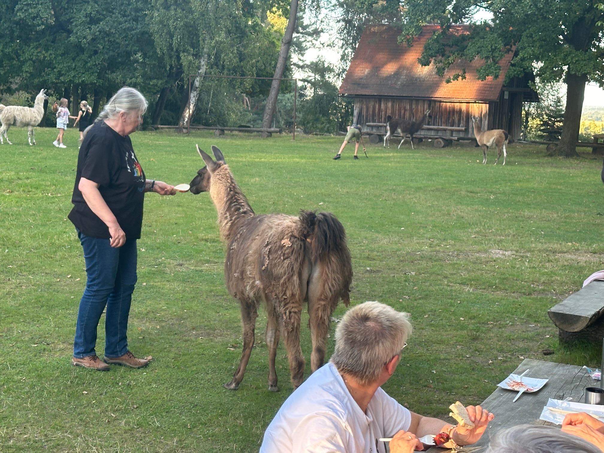 Z Legnicy w drogę powrotną wyruszyliśmy o godz. 16:30. Mijając Złotoryję skręciliśmy na Lwówek Śl., a w miejscowości Nowe Łąki skręciliśmy na „Ranczo Grapa”. Tam nie zabrakło czasu by odetchnąć na łonie natury. Po spożyciu kiełbasek nastąpiła integracja ogólnoparafialna w towarzystwie lam, zająców, owiec i jeleni. Było niezwykle ciepło jak na tę porę roku to też pobyt „w pięknych okolicznościach przyrody” przebiegał w błogiej atmosferze, ale o godz. 19:00 trzeba było wyruszyć w drogę powrotną.