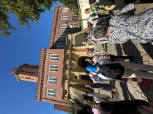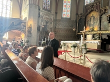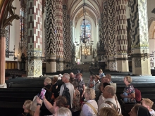 W czasie wolnym - czyli „po lodach i kawie” ruszyliśmy na pieszo do Sanktuarium Świętego Jacka. Przybyliśmy tam w Godzinie Miłosierdzia toteż odmówiliśmy koronkę przy Relikwiach Wydarzenia Eucharystycznego, po czym mieliśmy spotkanie z kustoszem sanktuarium - ks. Andrzejem Ziombrą. Mogliśmy dowiedzieć się o genezie Cudu Eucharystycznego m.in. że „w obrazie histopatologicznym stwierdzono fragmenty tkankowe zawierające pofragmentowane części mięśnia poprzecznie prążkowanego najbardziej podobna do mięśnia sercowego ze zmianami, które „często towarzyszą agonii”. Badania genetyczne wskazują na ludzkie pochodzenie tkanki, ale co ważne stwierdzają, że agonia była pod wpływem najbardziej możliwego stresu…